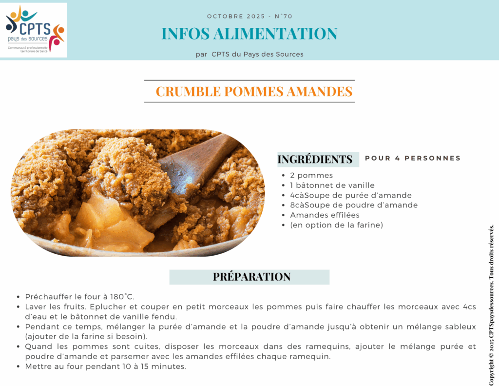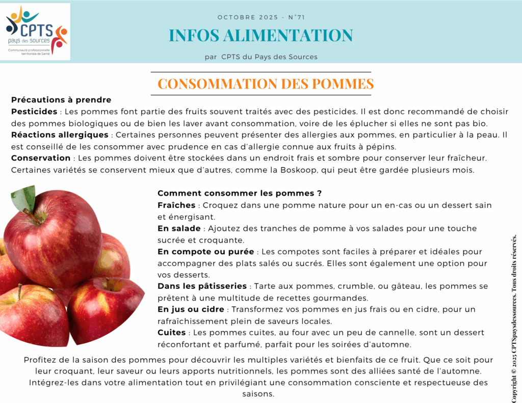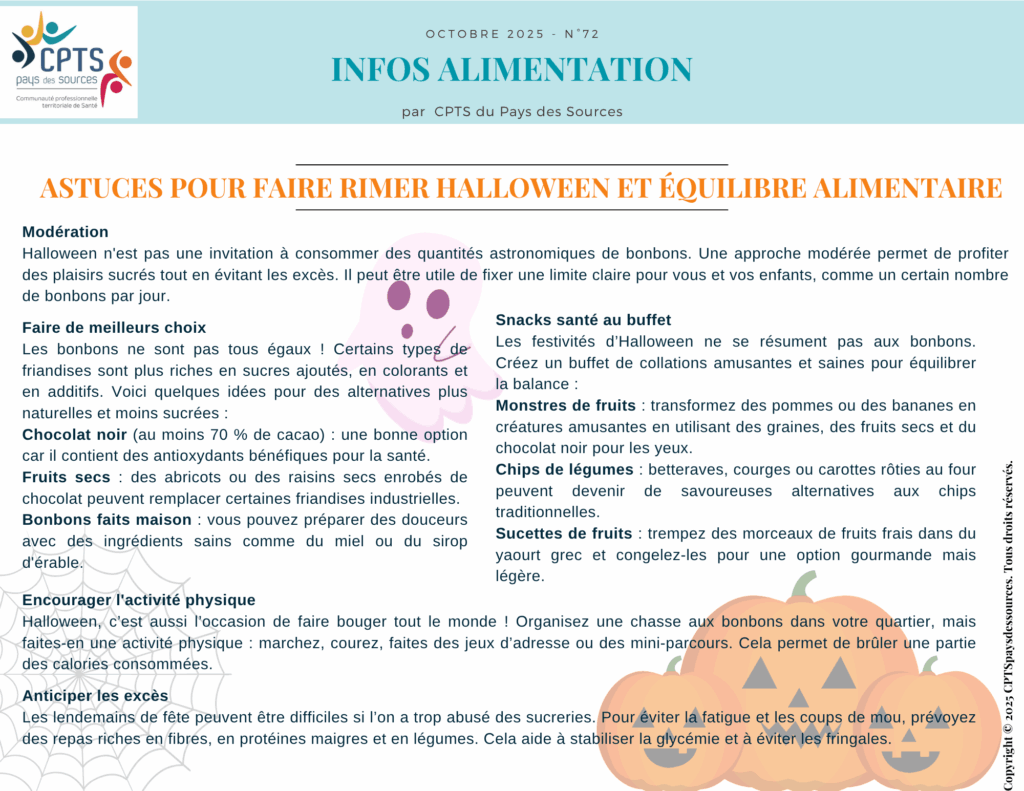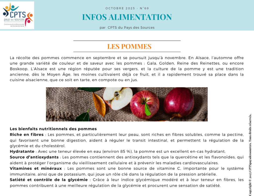 Retrouvez ci dessous les infos santé alimentation du mois d’Octobre 2025 qui paraissent tous les vendredis sur notre page Facebook.